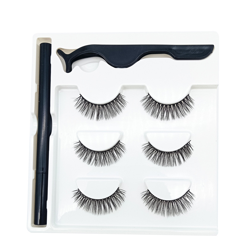 6D09自粘式免胶水三对装眼线笔假睫毛套装一笔三用 制作眼睫毛