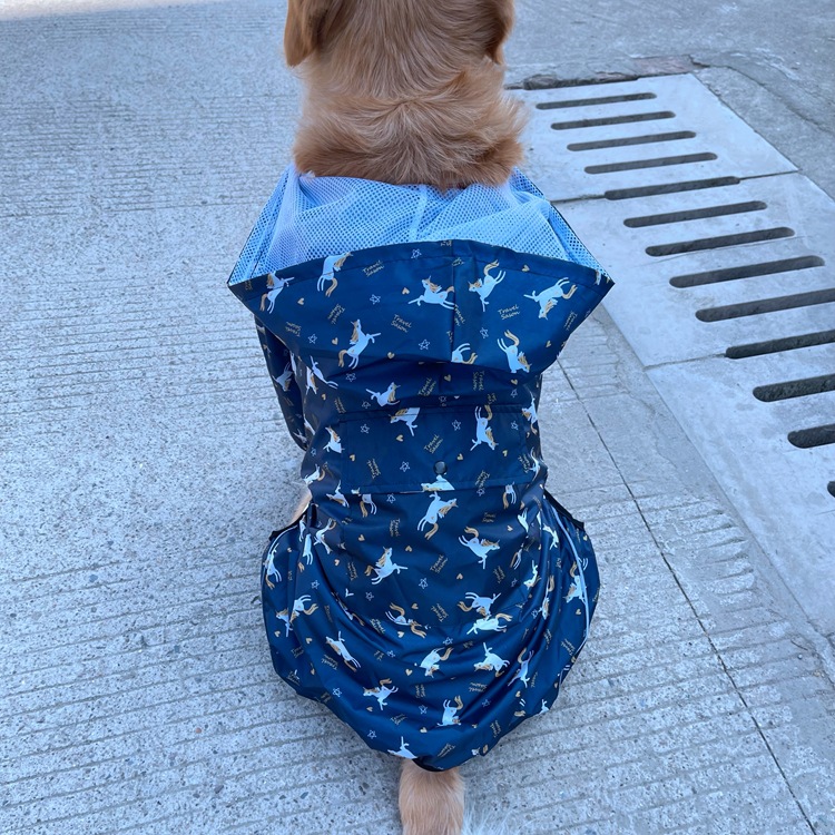 独角兽轻定制大狗大型犬连体雨衣透气反光大帽四脚宠物雨披