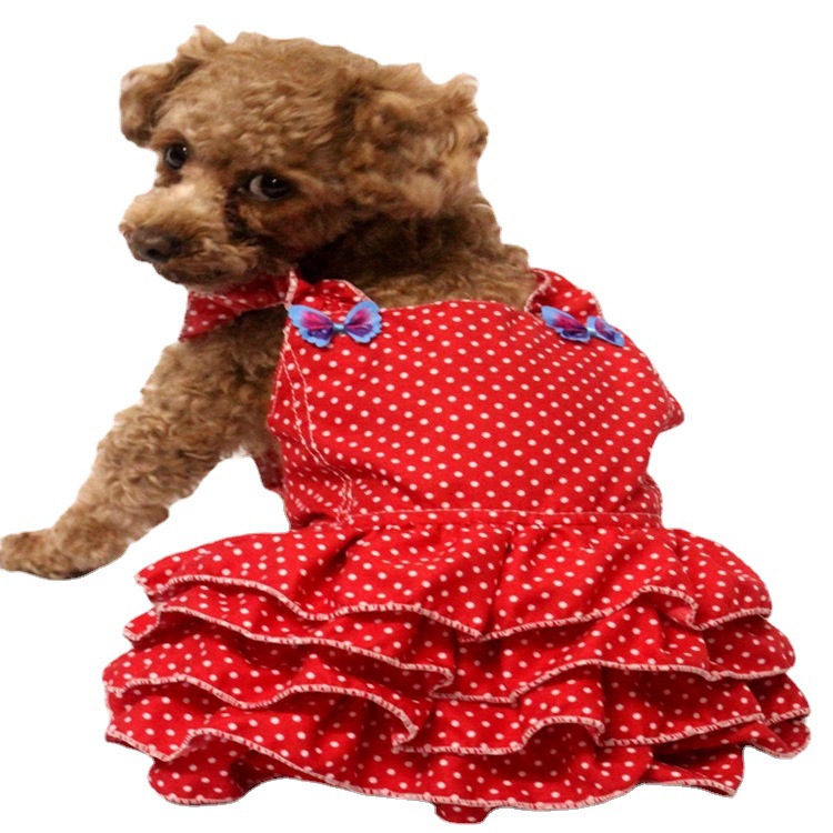 2025宠物春夏装红色白点印花连衣裙宠物公主裙狗狗裙定制款