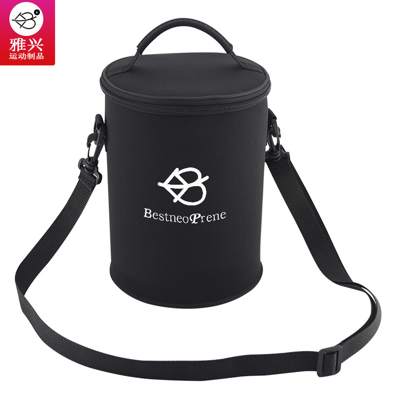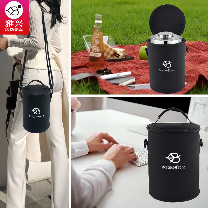 厂家直销潜水料圆形饭盒袋手提便当包学生带饭保温饭兜桶装午餐包