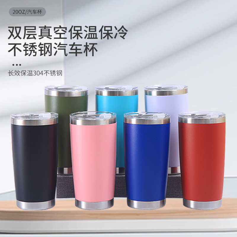 跨境户外20oz不锈钢汽车杯双层带盖啤酒保温杯简约大容量冰霸杯