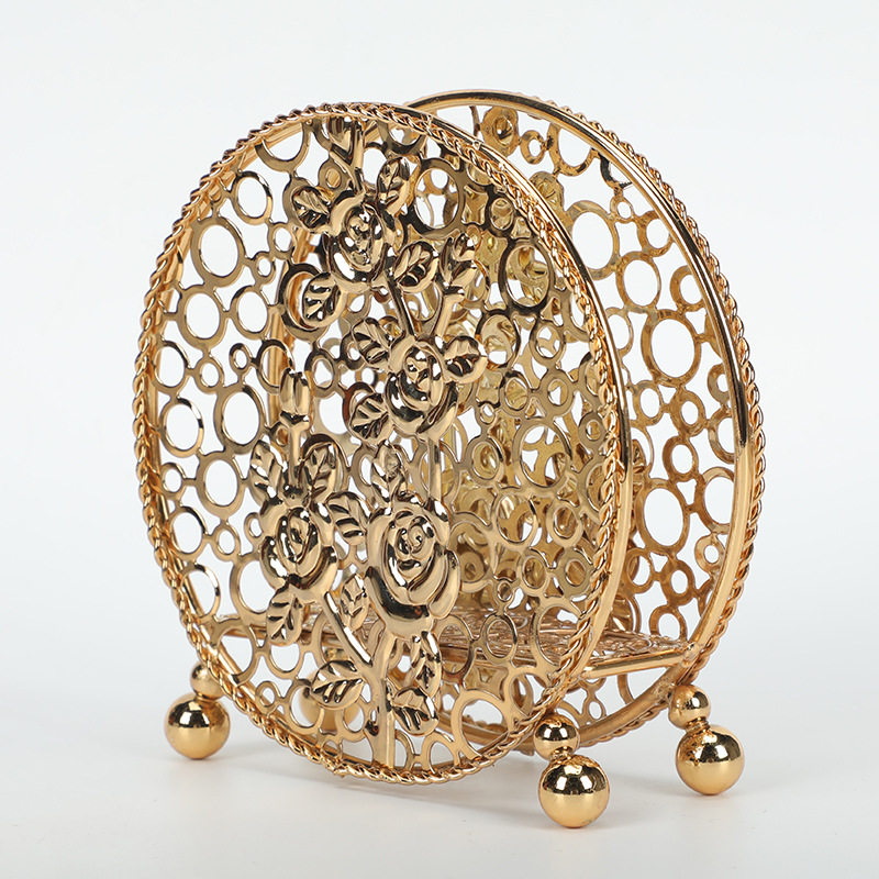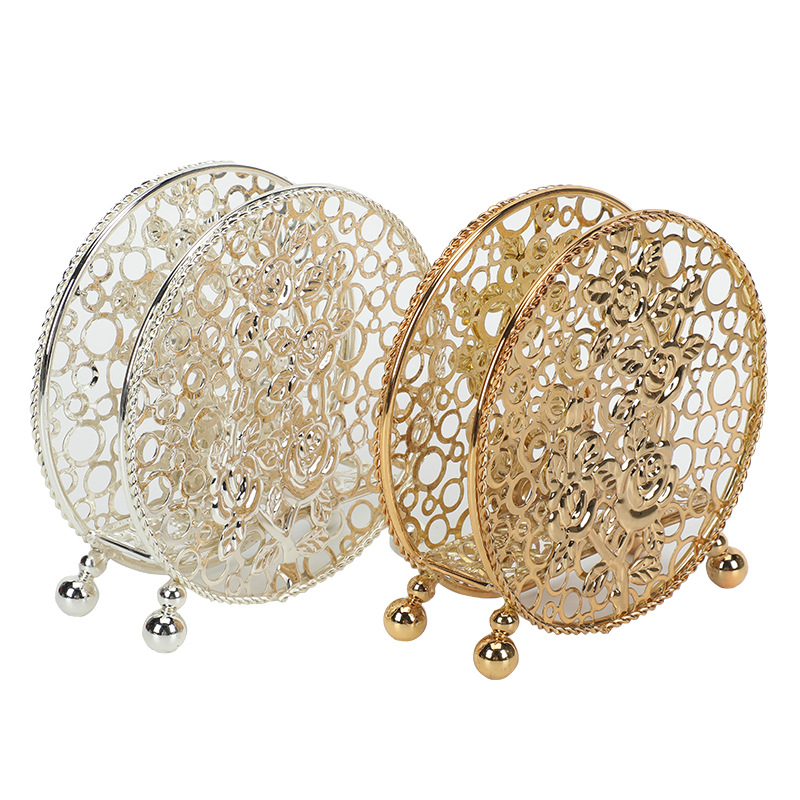 厂家现货立式铁艺纸巾架桌面餐巾纸架金属圆形镂空餐厅收纳餐纸架