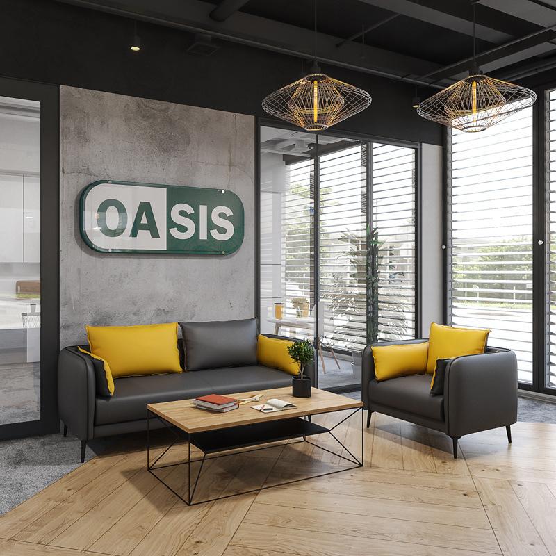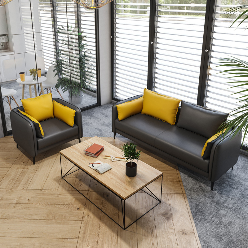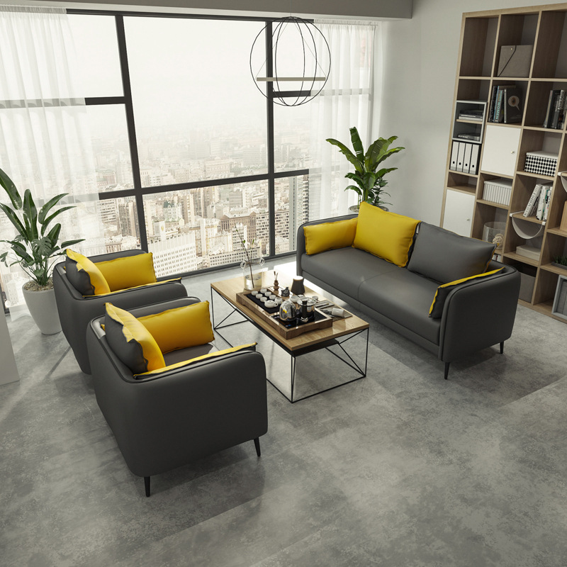办公室沙发简约现代接待区商务会客洽谈室三人位办公沙发茶几组合
