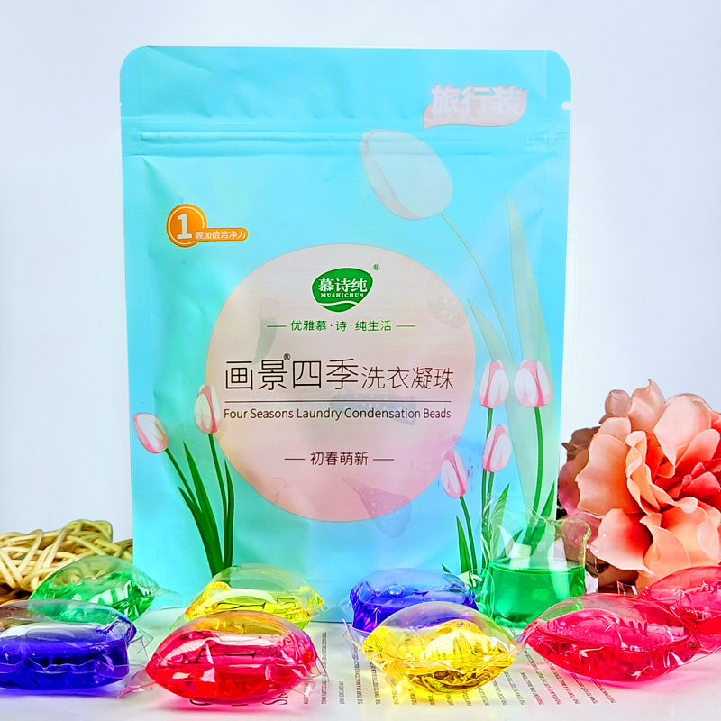 慕诗纯10颗袋装洗衣凝珠持久留香深层清洁多效合一洗衣珠批发厂家