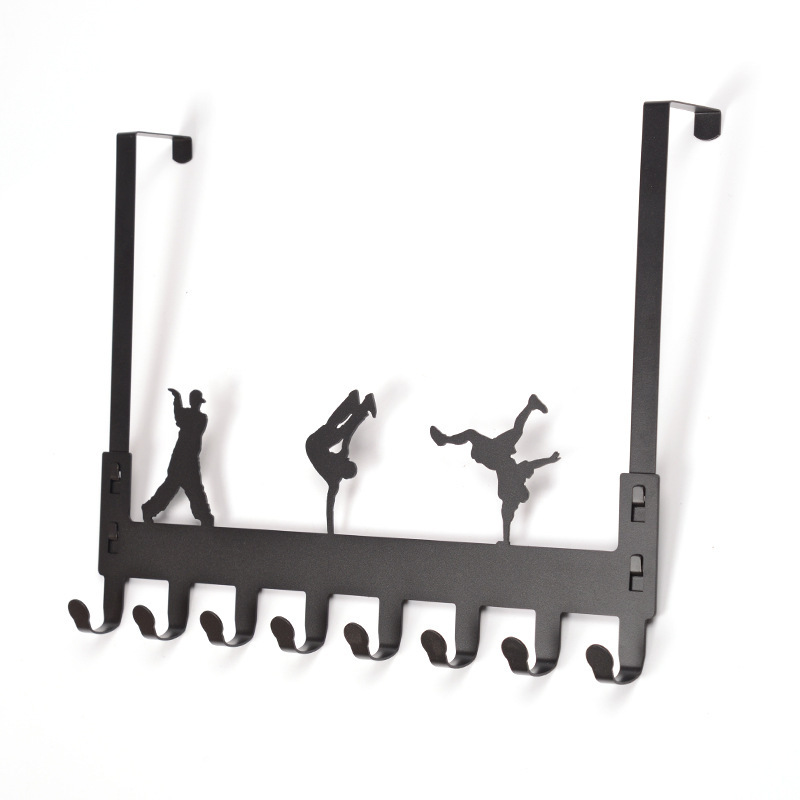 跨境免打孔静音碳钢挂钩强力承重加厚多钩卧室衣帽收纳门口置物架