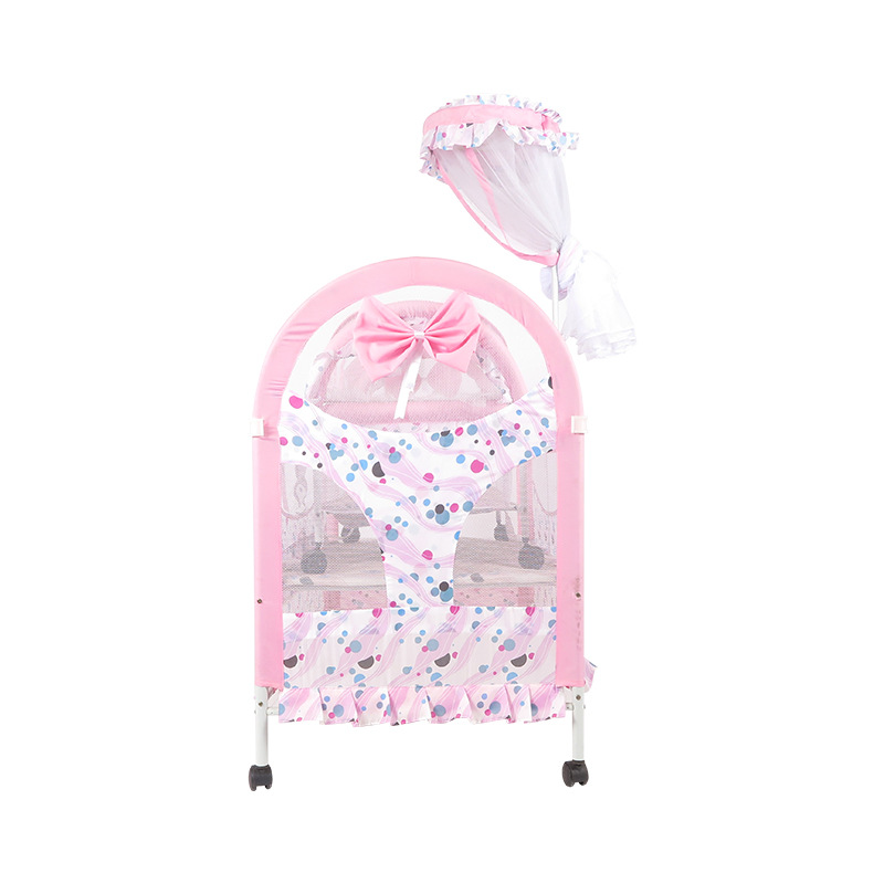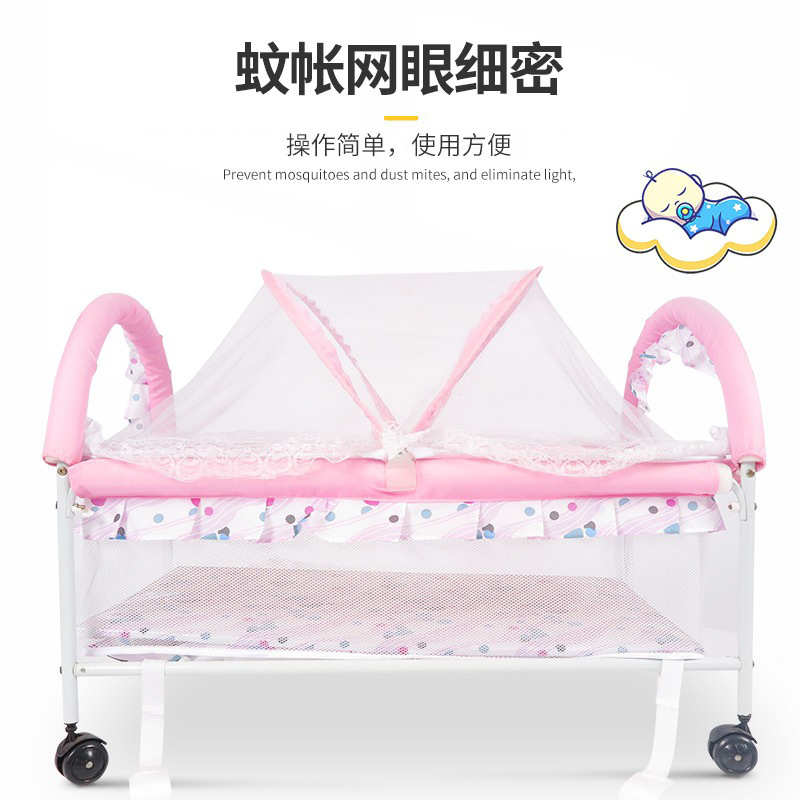公主风格婴儿床推床布艺小推车童床宝宝铁床可加长bb床储物层