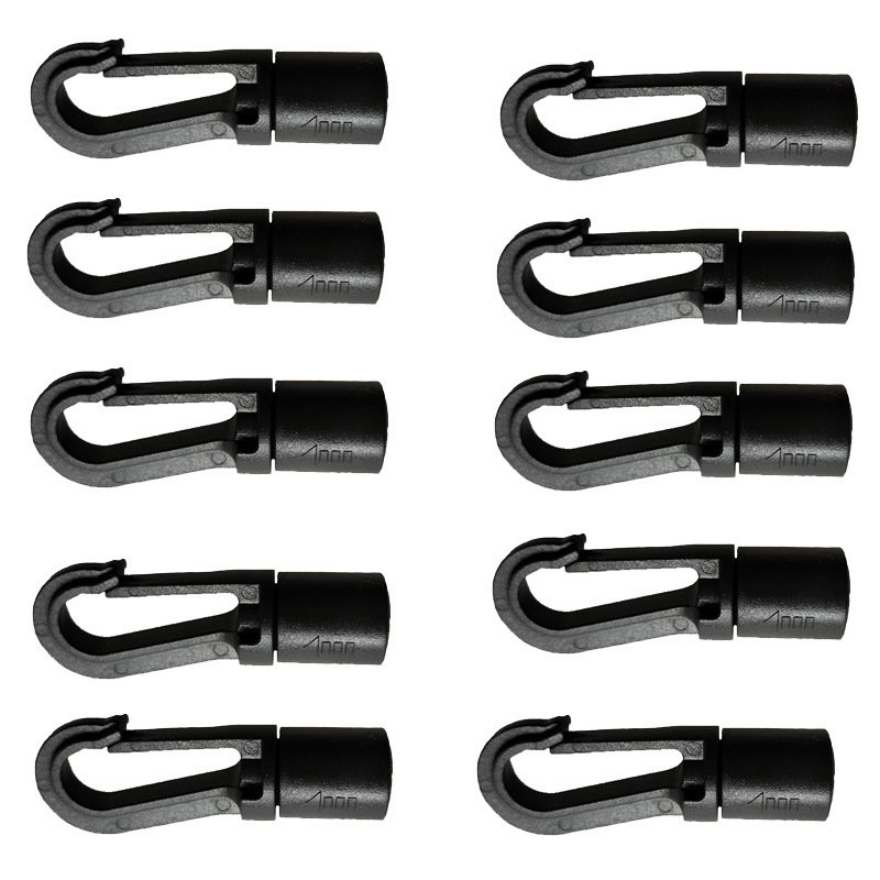 供应户外游船皮划艇配件黑色注塑弹力绳用10个包6毫米孔 有档挂钩