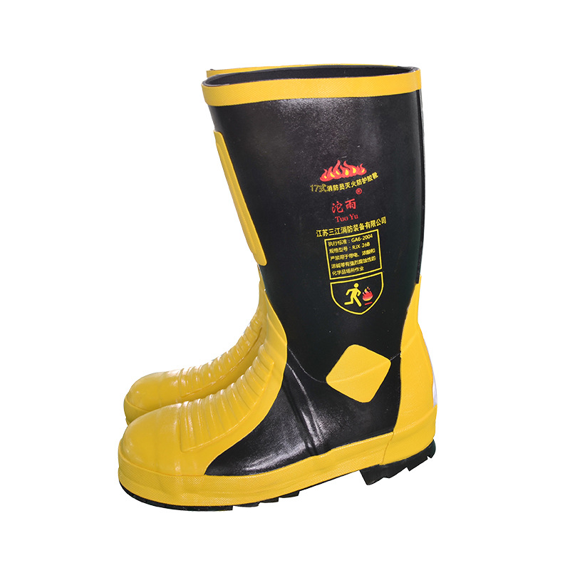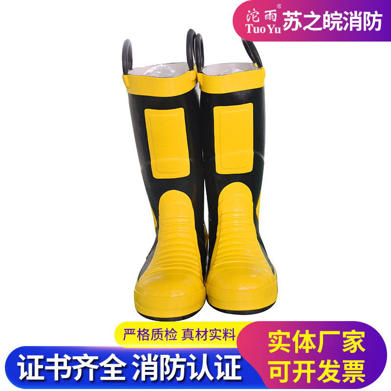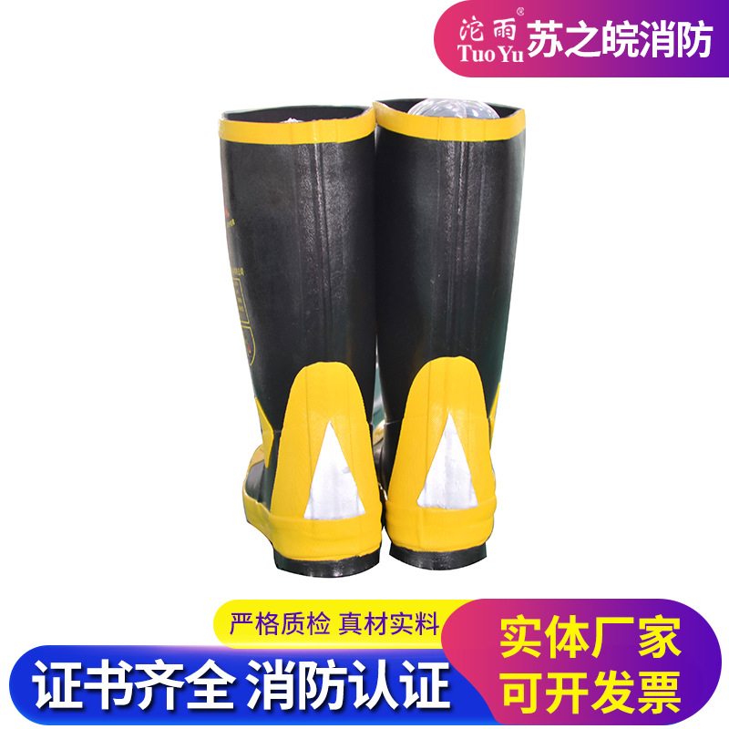 灭火消防靴 消防员灭火防护靴雨鞋演习作训钢板底救援灭火消防靴