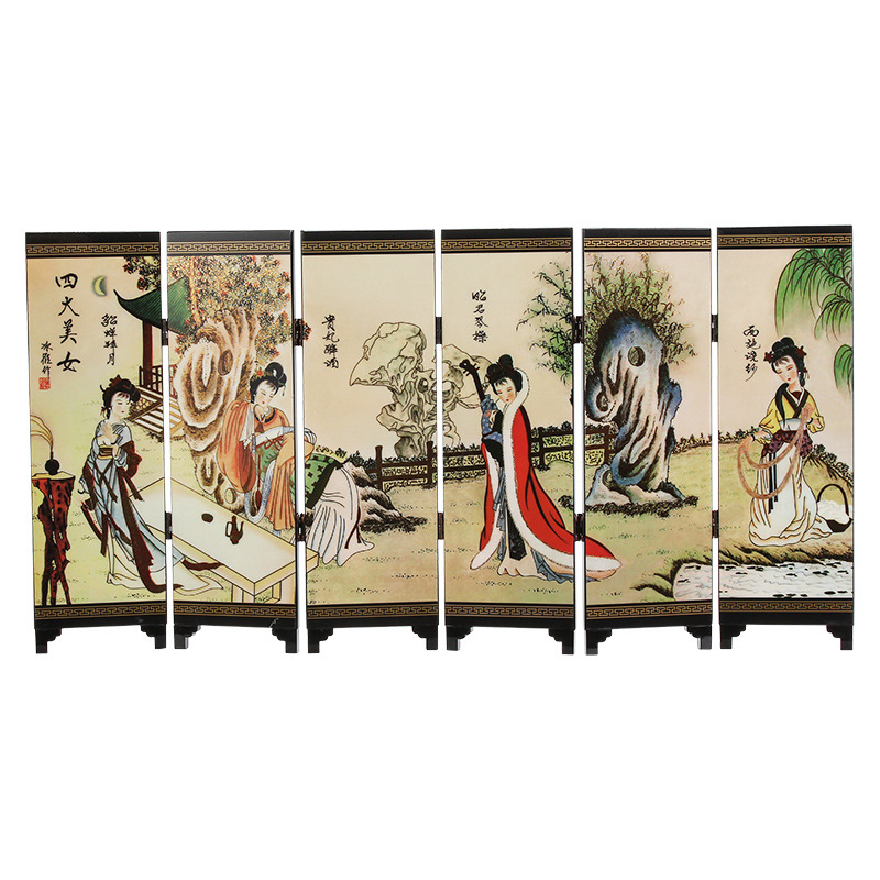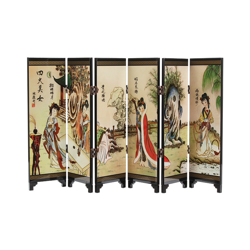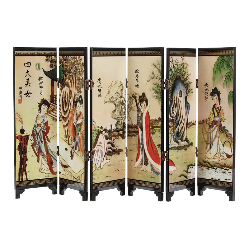四大美女6页屏风 雕刻工艺品中国风礼品 古典桌面微缩小摆件