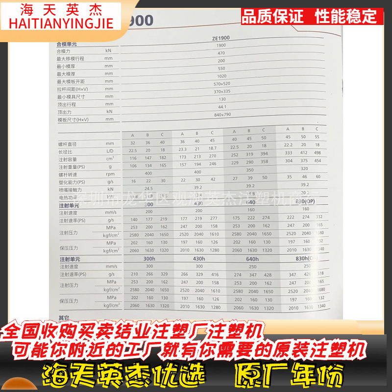 海天长飞亚ZE1900全电动注塑机螺杆规格齐全长飞亚全电动注塑机