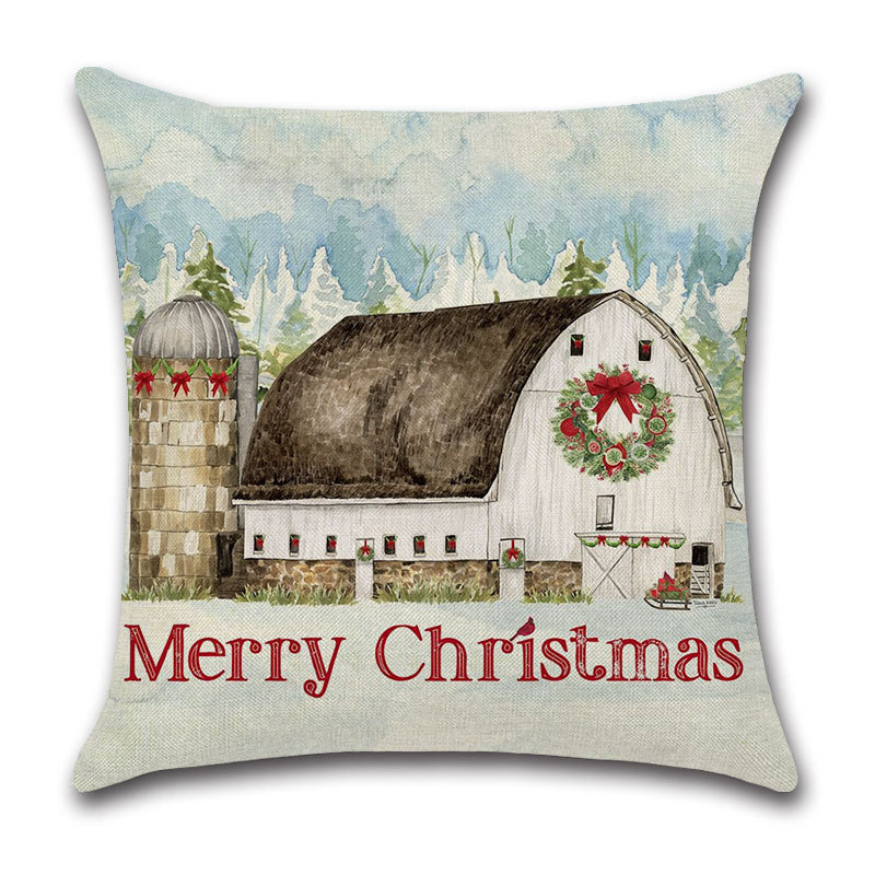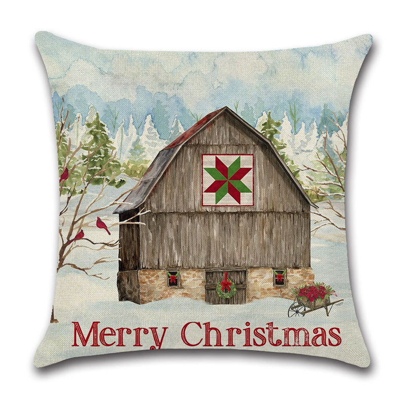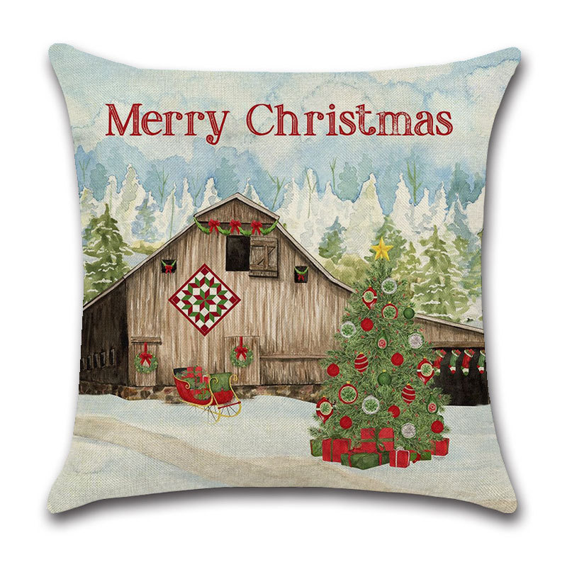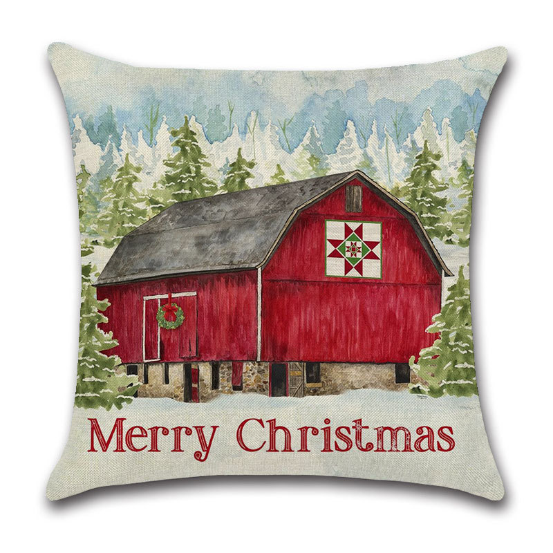 圣诞节抱枕套ins风2022爆款卡通动漫圣诞节雪地复古小房子靠枕套