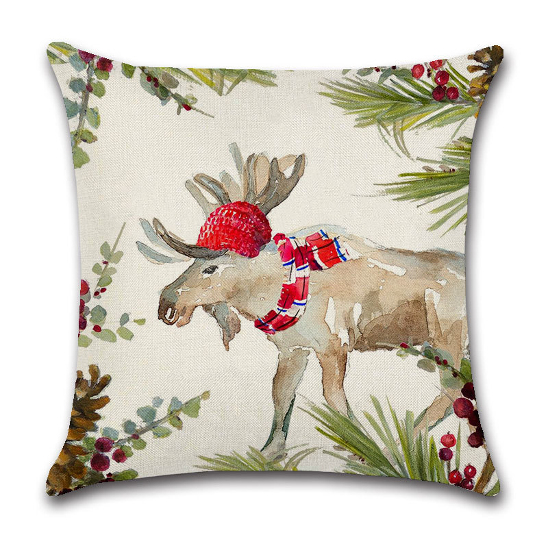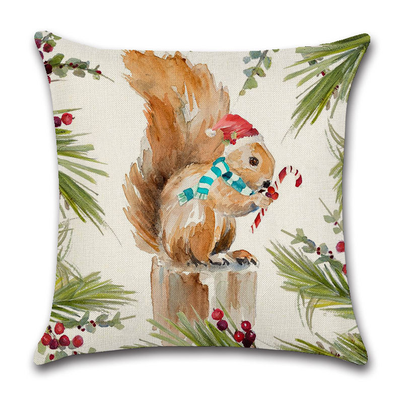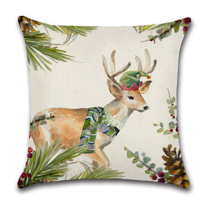 圣诞跨境抱枕套亚麻卡通动物头像圣诞元素红色铃铛喜庆居家靠枕套