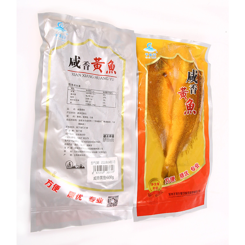 | 包装规格 | 咸香黄鱼550g(25条) | 包装规格 | 咸香黄鱼600g(20条) |
