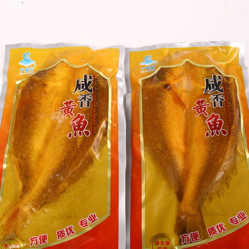| 包装规格 | 咸香黄鱼450g(25条) | 包装规格 | 咸香黄鱼500g(25条) |