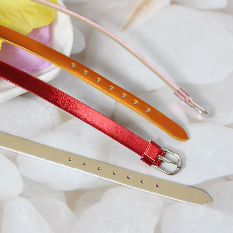 | 颜色 | 【圆形银色扣头】8mm金属皮-红色 | 颜色 | 【圆形银色扣头】8mm金属皮-浅蓝色 |