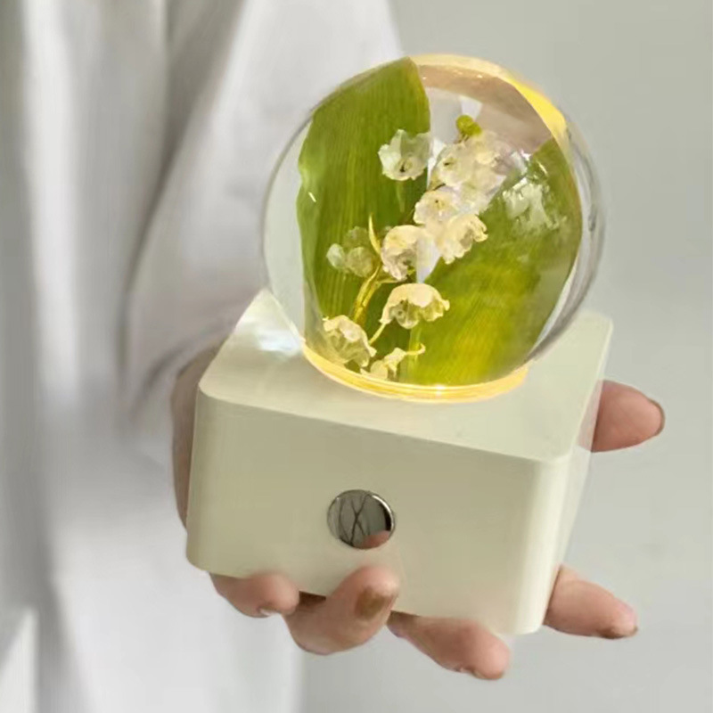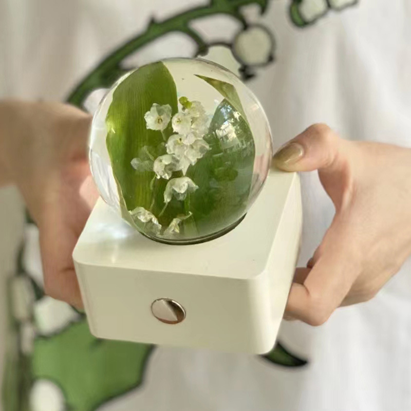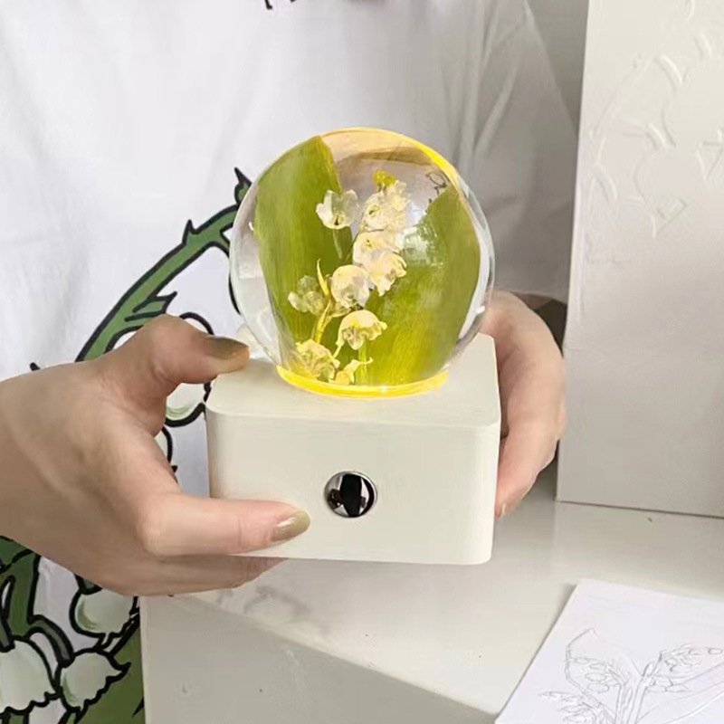 铃兰永生花 卧室摆件璀璨夜灯 儿童节实心水晶球情圣诞节礼物送男