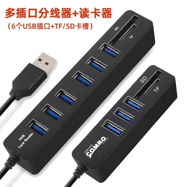 | 接口数 | 3口白色hub+双卡SD/TF(带蓝色指示灯) | 接口数 | 6口黑色hub+双卡SD/TF |