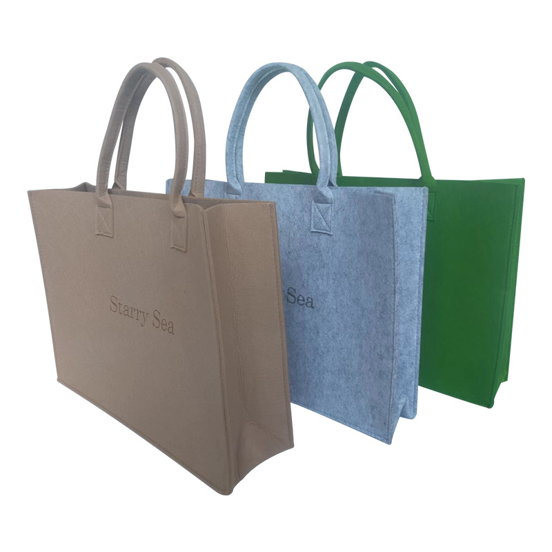 毛毡手提包字母包纯色大容量托特包外出购物单肩包收纳包手工