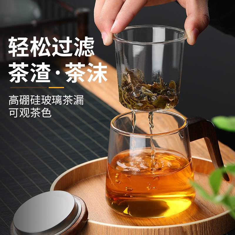 批发茶杯加厚玻璃杯带过滤泡茶杯带盖家用高硼硅玻璃花茶品茗杯