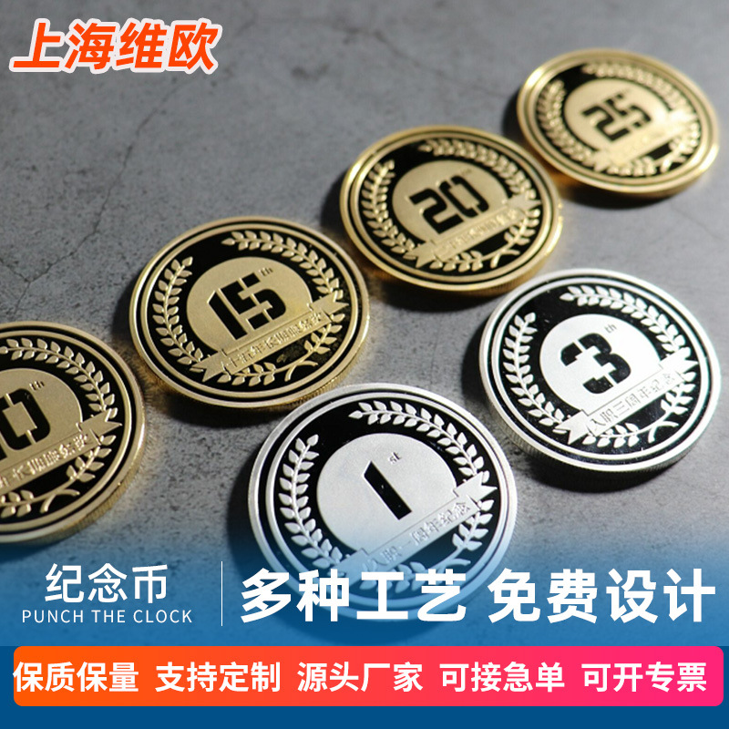 纯银纪念币定 制 金属纪念币企业周年庆收藏品纪念章 金银币套装