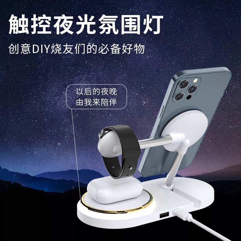 magsafe五合一15W折叠磁吸无线闪充多功能小夜灯充电器批发