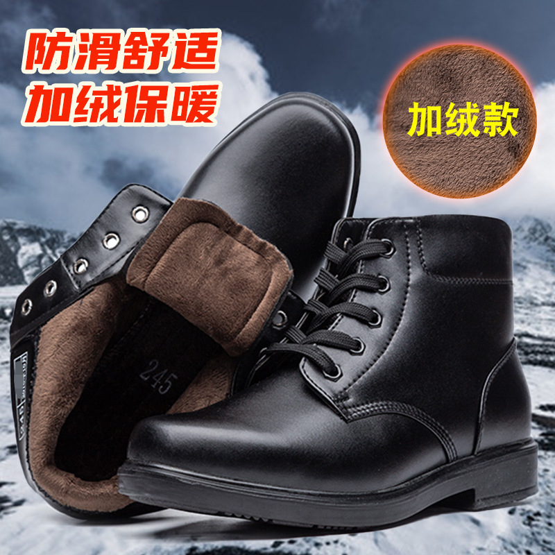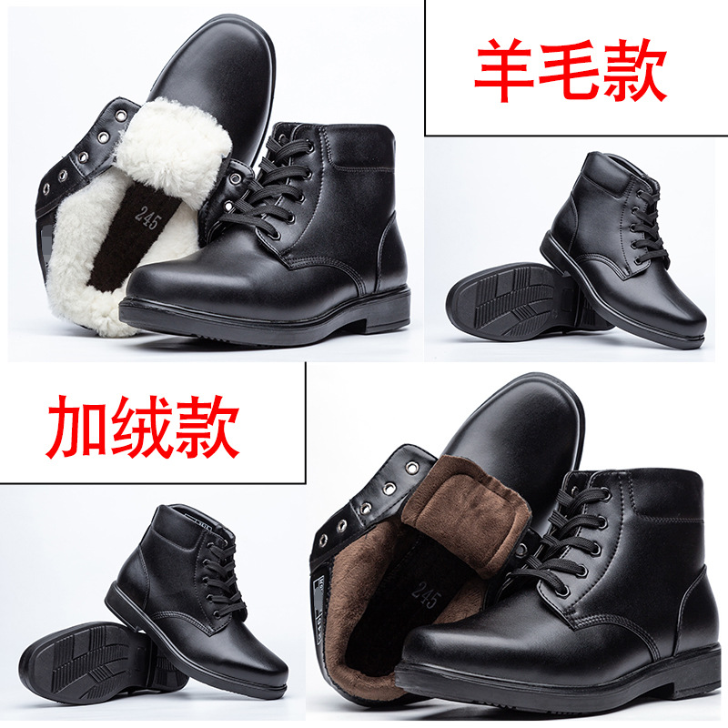 士兵毛皮鞋冬季加绒常服绒皮鞋防滑雪地靴男士防寒靴保暖羊毛棉靴
