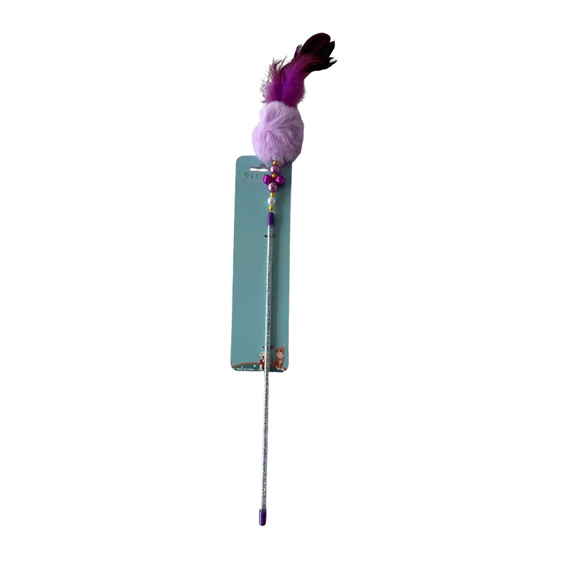 彩色羽毛铃铛逗猫棒猫咪互动自嗨解闷玩具耐咬逗猫杆宠物玩具批发