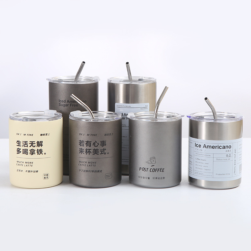 网红同款不锈钢美式保温咖啡杯ins风带吸管便携办公牛奶杯现货