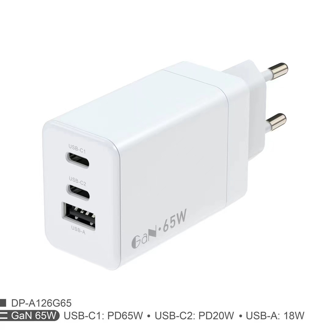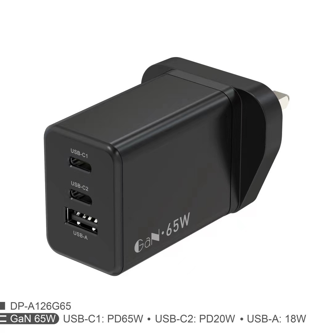 65WGaN氮化镓pd快充 2C1A美规折叠脚 pd+qc3.0手机平板电脑适配器