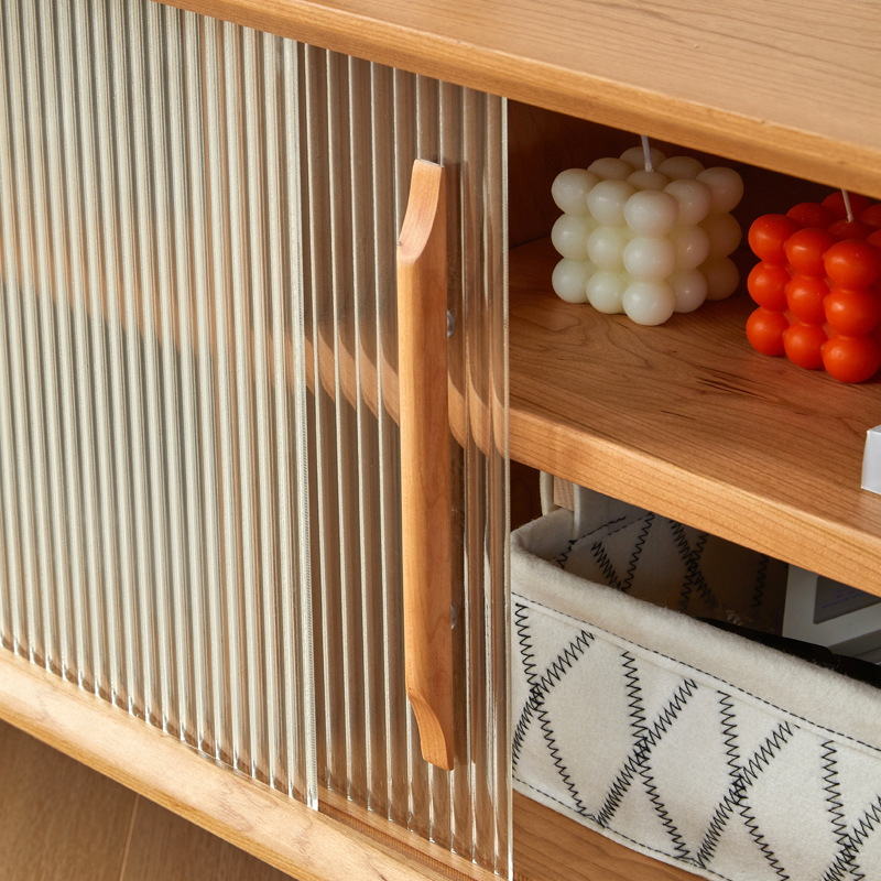 北美樱桃木全实木电视柜北欧简约客厅视听柜长虹玻璃推拉门储物柜