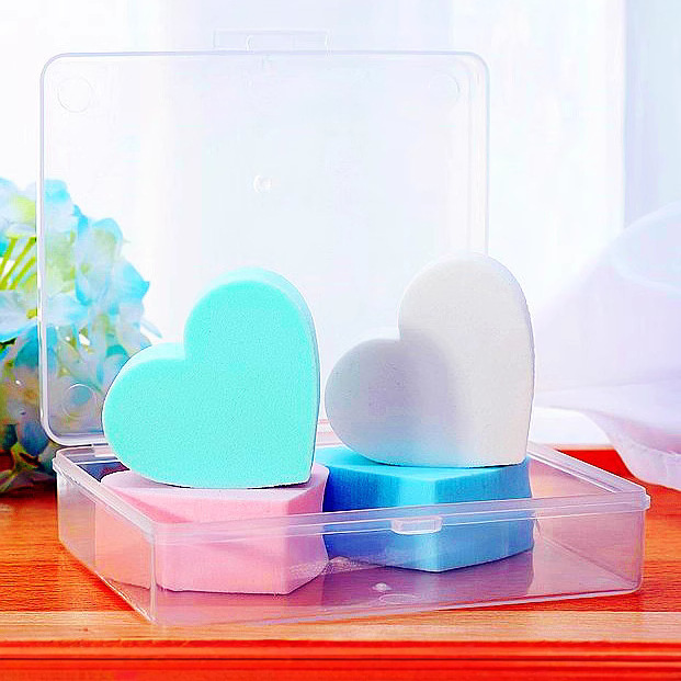 爱心粉扑 B4个盒装 双色心形粉扑 四色桃心化妆海绵粉扑