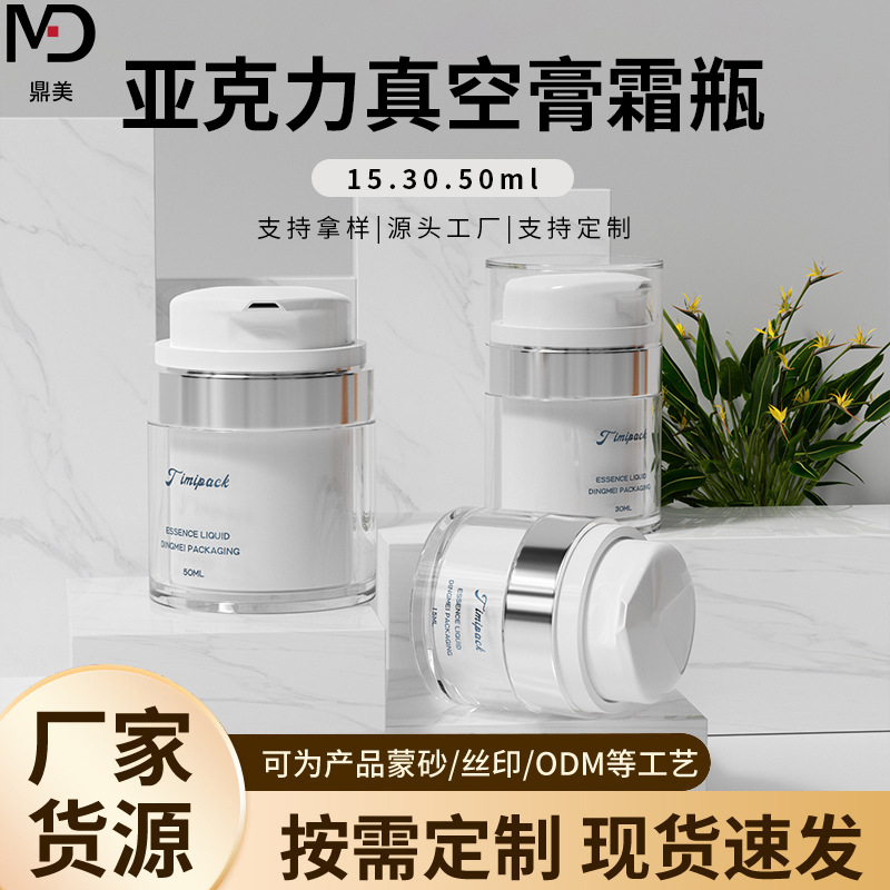 亚克力膏霜真空瓶 化妆品鹰嘴按压乳液罐15/ 30g 50g定制电镀银圈