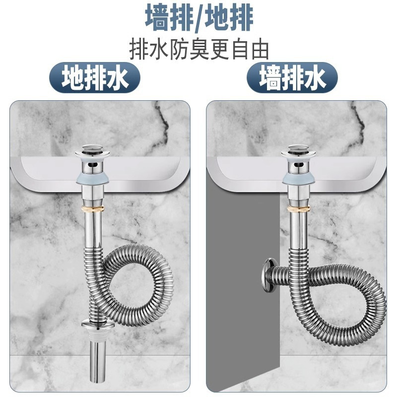 厨房洗菜盆水槽下水管洗碗池洗脸面盆下水器 304不锈钢排污波纹管