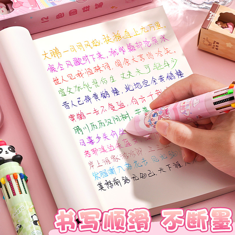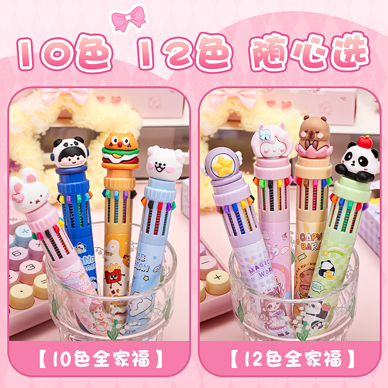 多功能按动多色合一圆珠笔小学生卡通做笔记标记用手账彩色中性笔