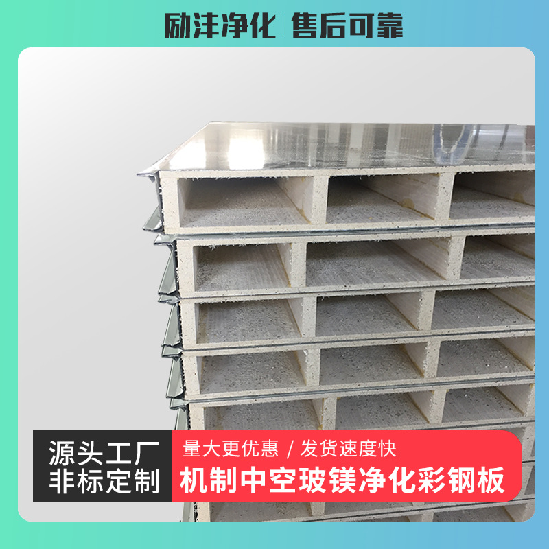 机制中空玻镁彩钢板硫氧镁复合夹芯净化板外墙防火隔热洁净板隔墙