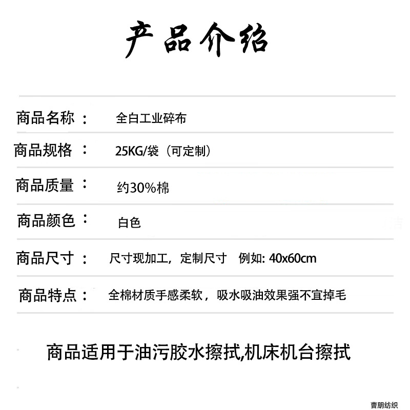 主营产品:擦机布 工业抹布 适用于汽车维修工厂 油漆厂 印刷厂 擦拭油污