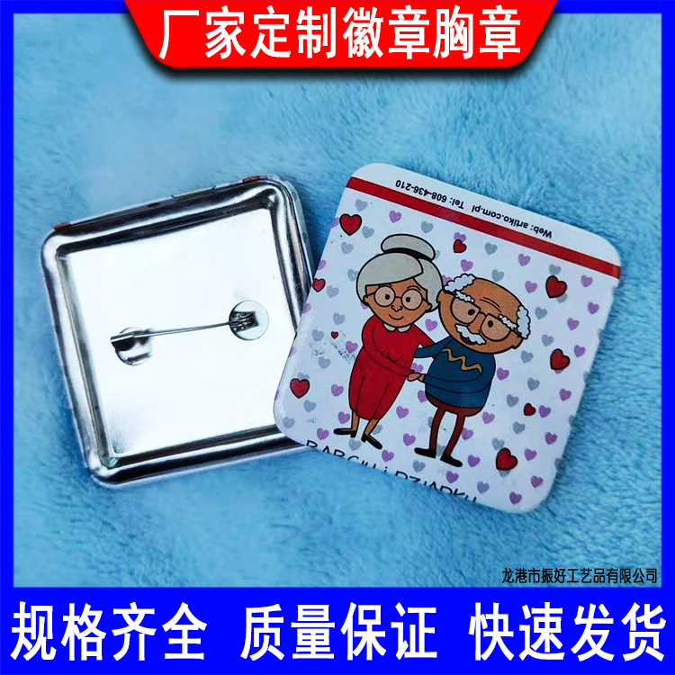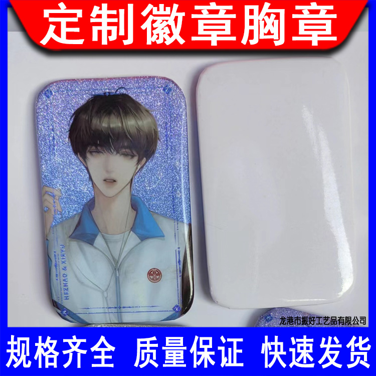金葱粉方形马口铁徽章卡通图像马口铁胸章个性印刷马口铁胸章徽章