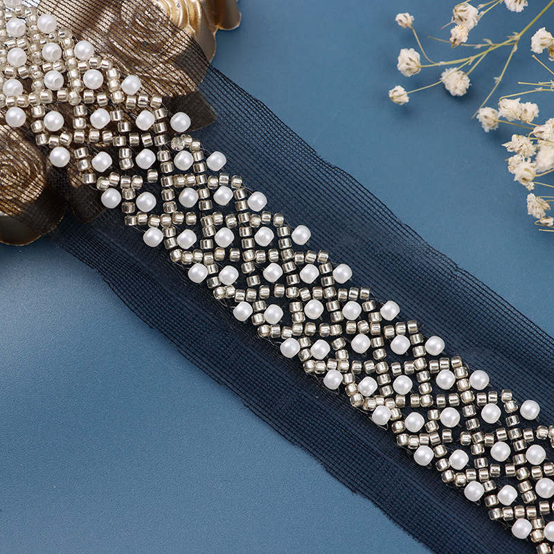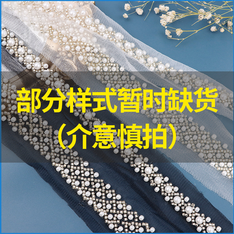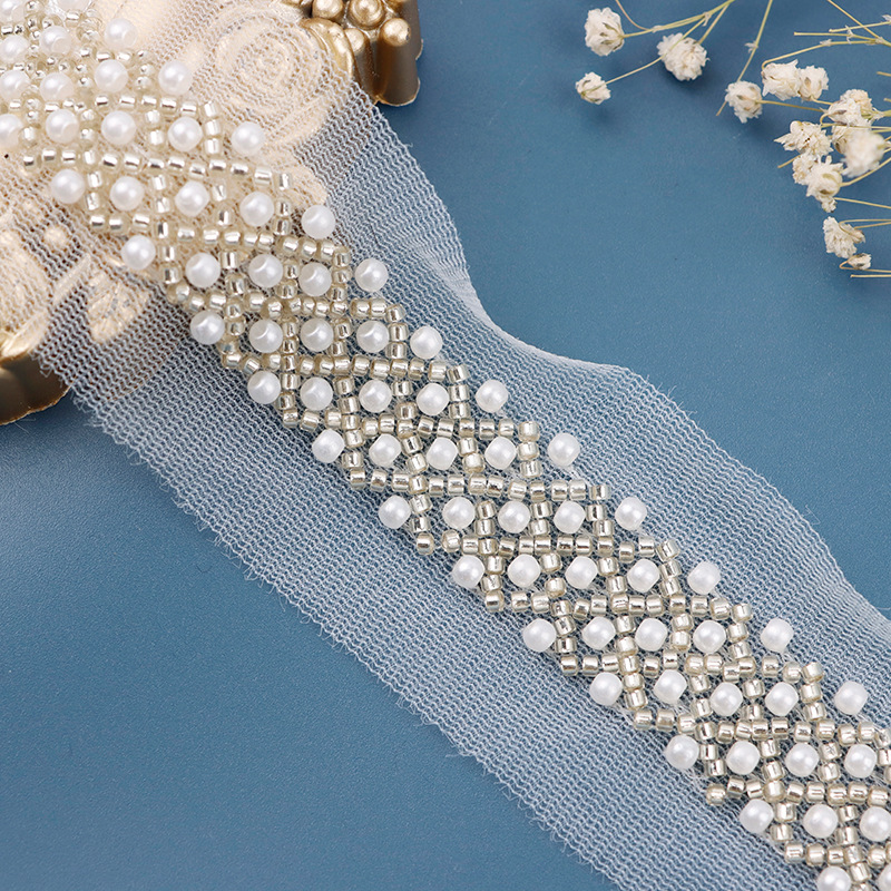 新款珍珠高档蕾丝网纱服装婚纱服装针织弹力帐纱花边辅料现货批发