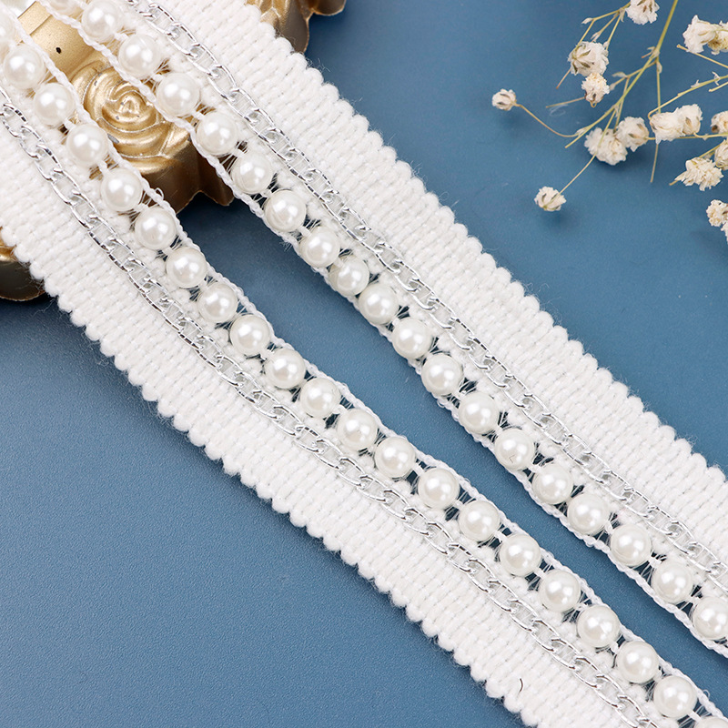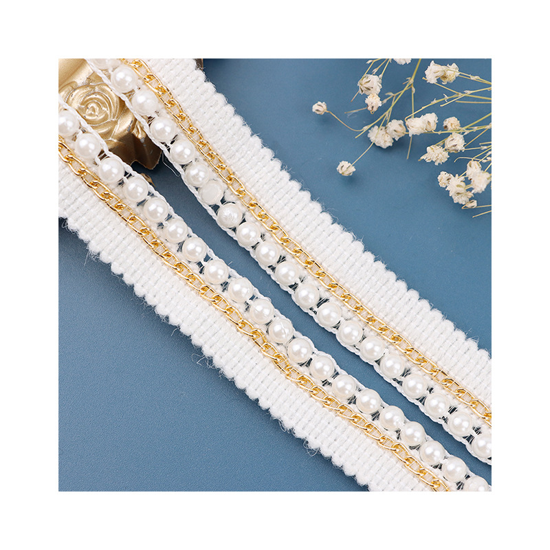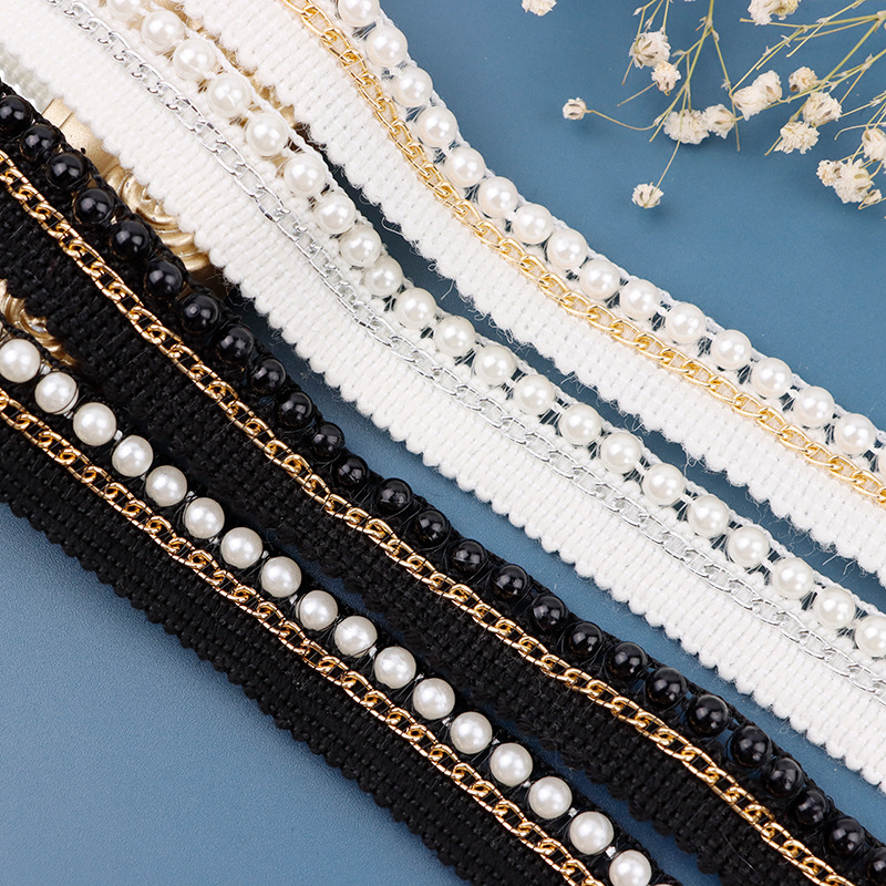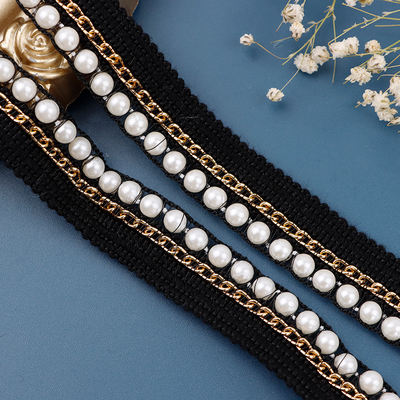 2025新款厂家直供黑色蕾丝花边缝纫纱服装服饰搭配金色链珠
