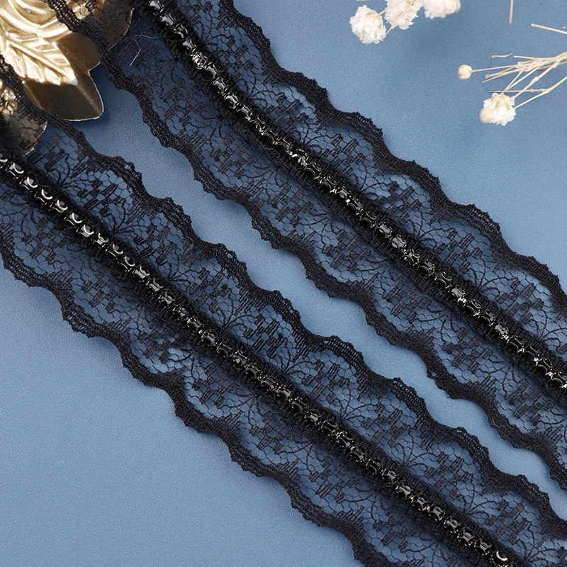 3cm黑色蕾丝白色爪钻