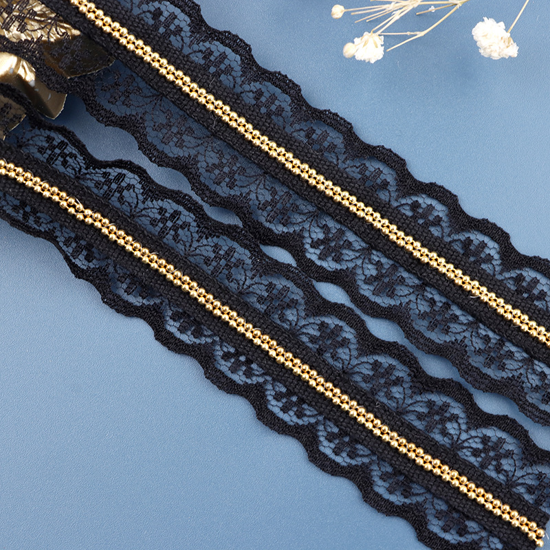 3cm黑色蕾丝1.5mm金铁珠