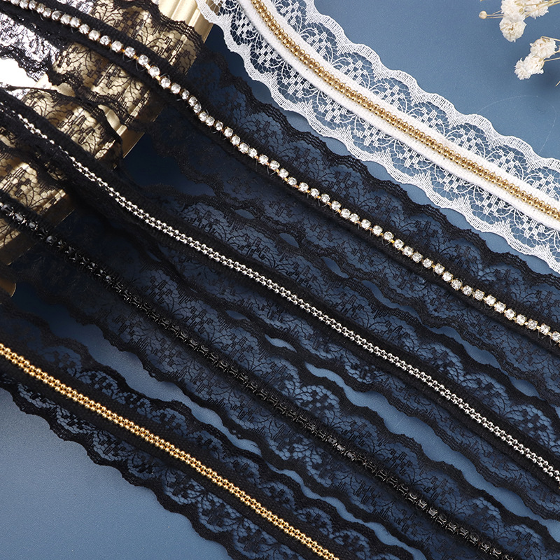 3cm黑色蕾丝1.5mm白铁珠