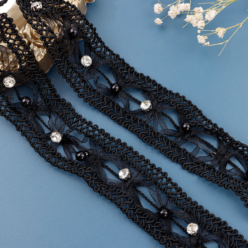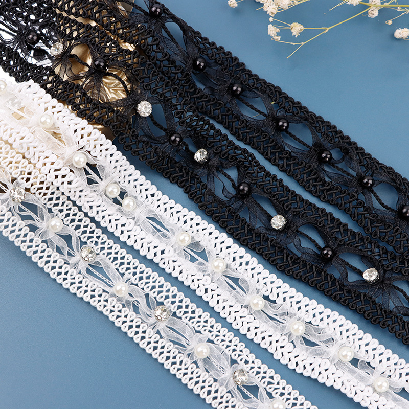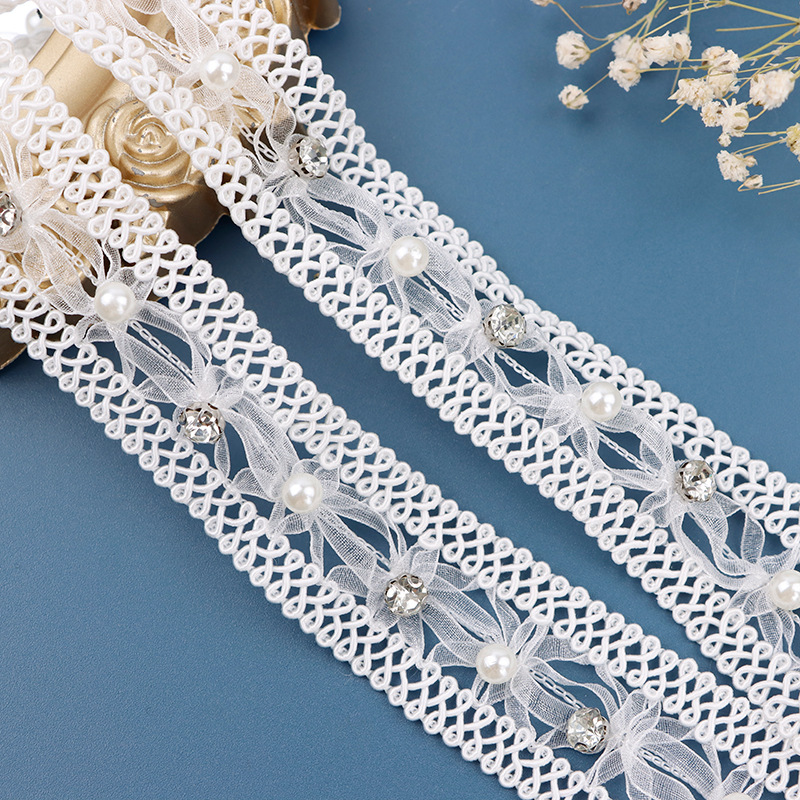 厂家直销新款婚纱服装针织弹力蕾丝网纱珠头花边现货批发
