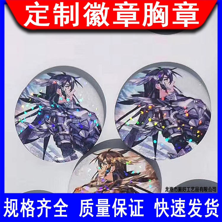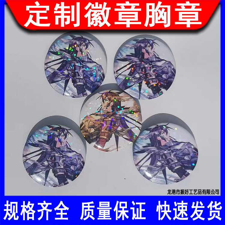 多款镭射膜胸章厂家定制马口铁徽章UV印刷镭射材料金属马口铁徽章