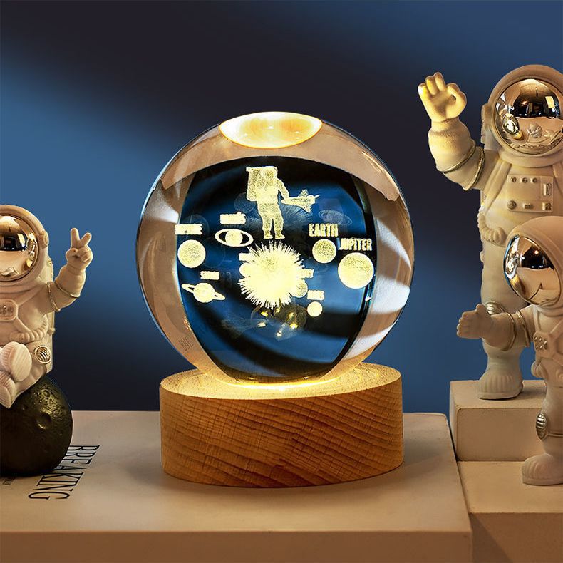 水晶球内雕发光小夜灯创意桌面摆件木底座生日伴 手礼品跨境批发