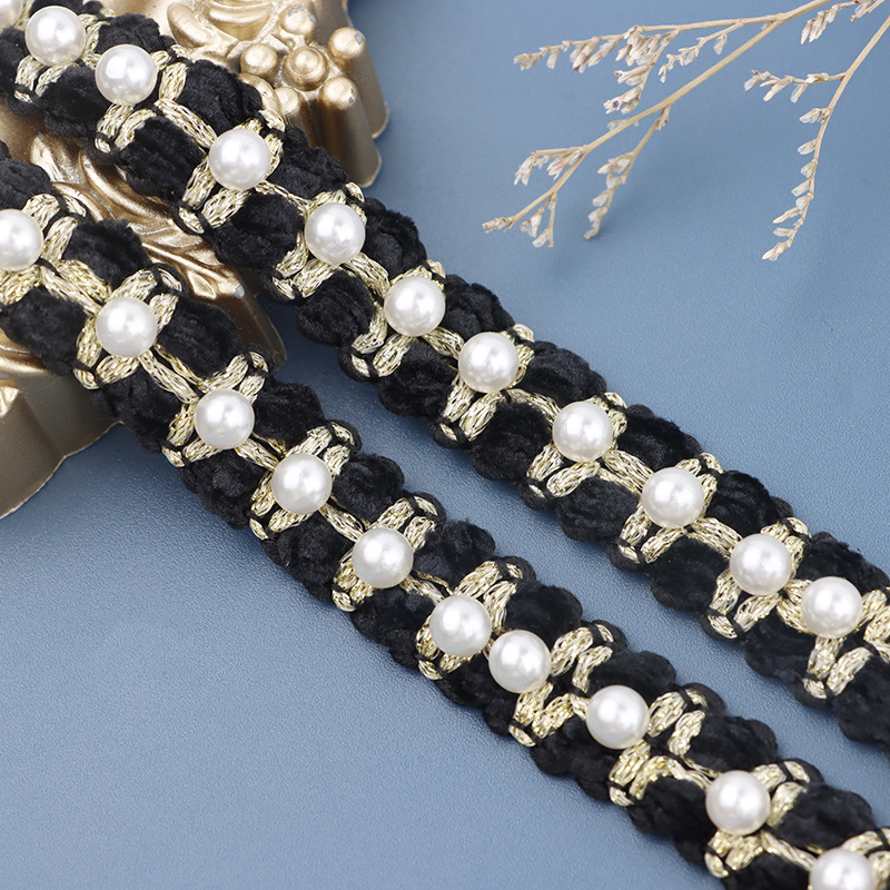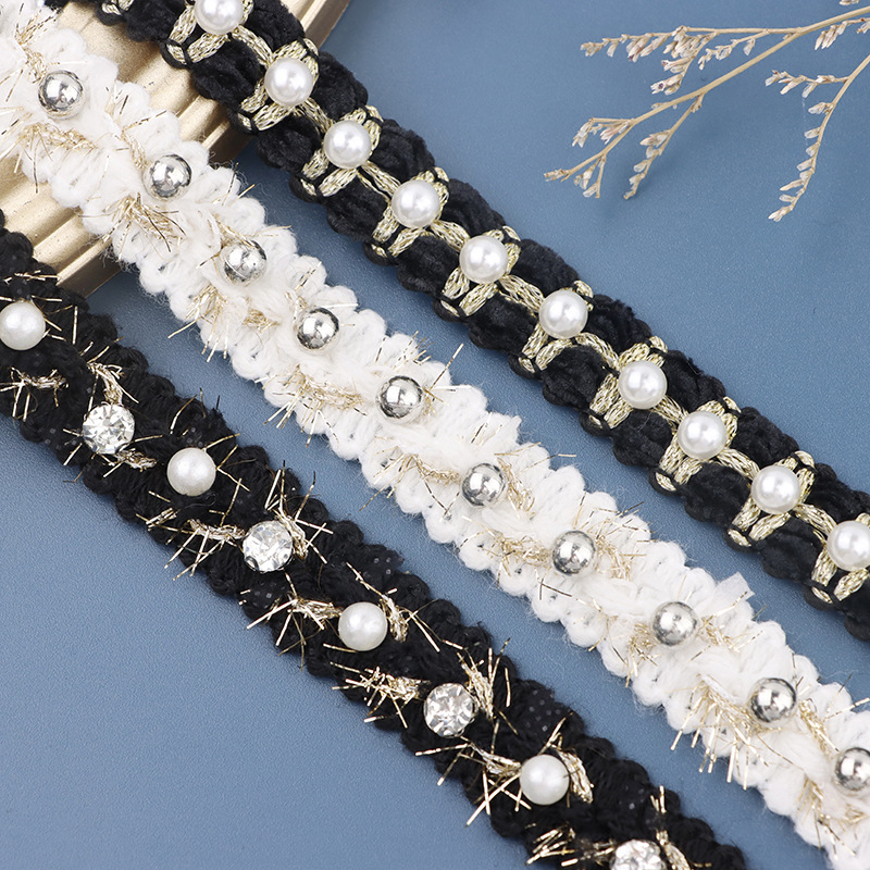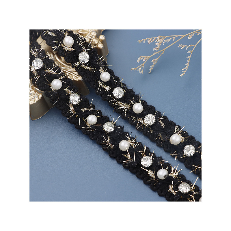 1.5黑毛线底金玻璃纱6厘白泡珠