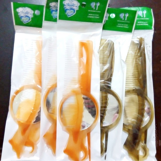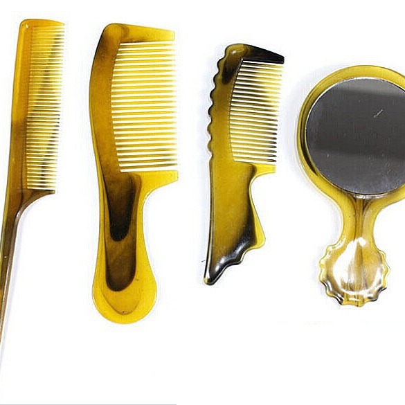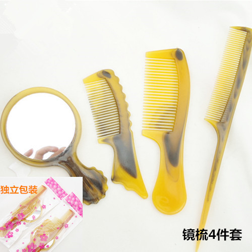 特价 4件套镜梳 牛筋梳折不断美发梳子 镜子 造型仿牛角梳