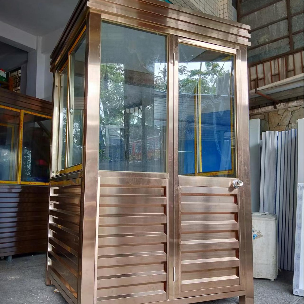 室外不锈钢保安亭门卫小区物业可移动凉亭方形户外岗亭金属亭子