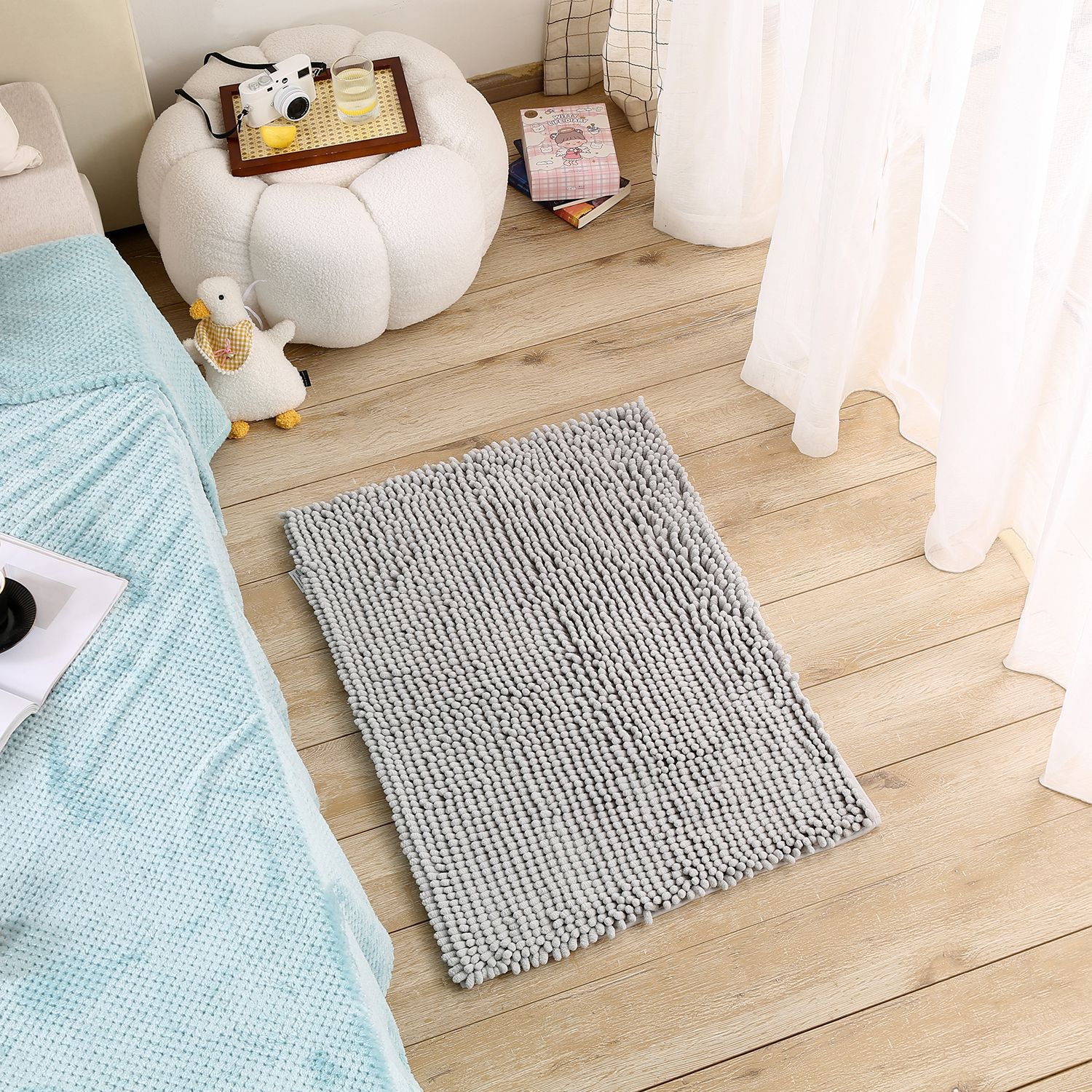 跨境ins雪尼尔粗毛热溶胶底简约现货素色防滑地毯 卧室门口地垫