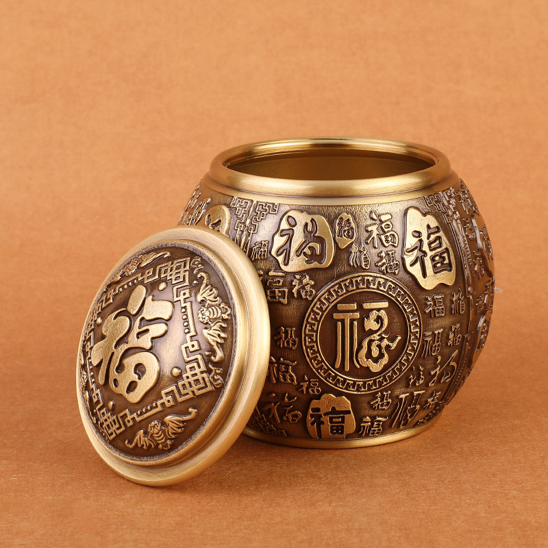 纯黄铜米缸百福缸聚宝盆桌面小摆件烟灰缸书房装饰品义乌厂家批发